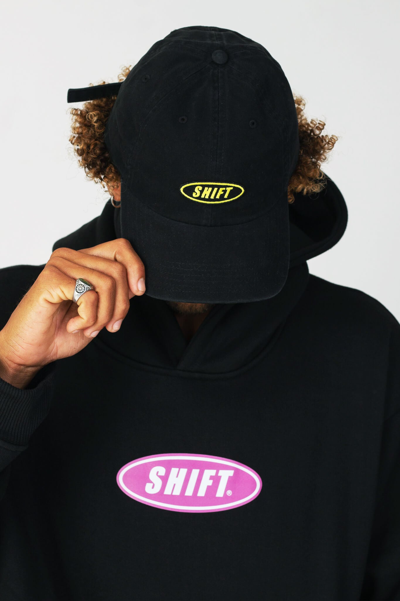 Dad Hat com modelagem clássica e patch amarelo Shift. Tamanho único.