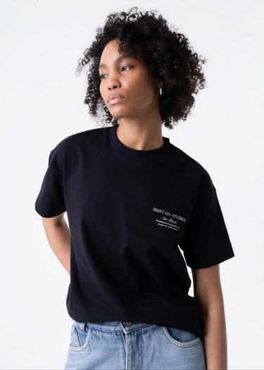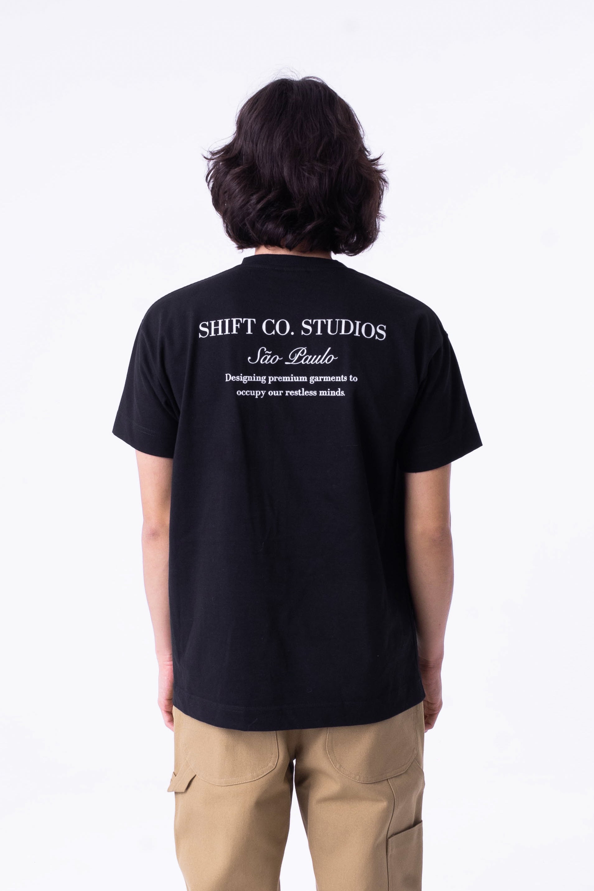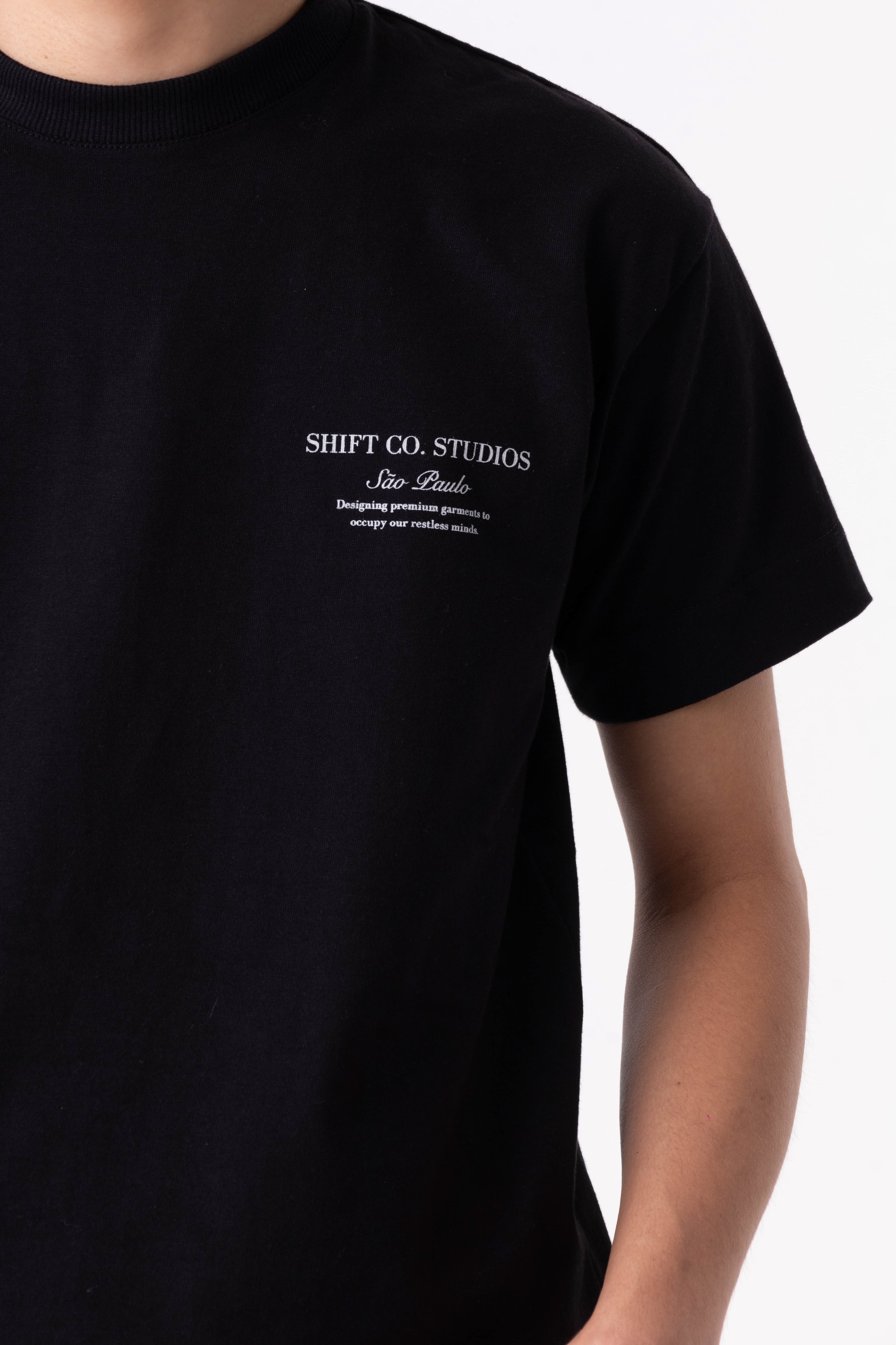 A T-Shirt Shift Studios Black possui nossa modelagem ampla (relaxed fit) confeccionada em malha premium 100% algodão. Carrega a estampa “Shift Studios” na frente e nas costas.